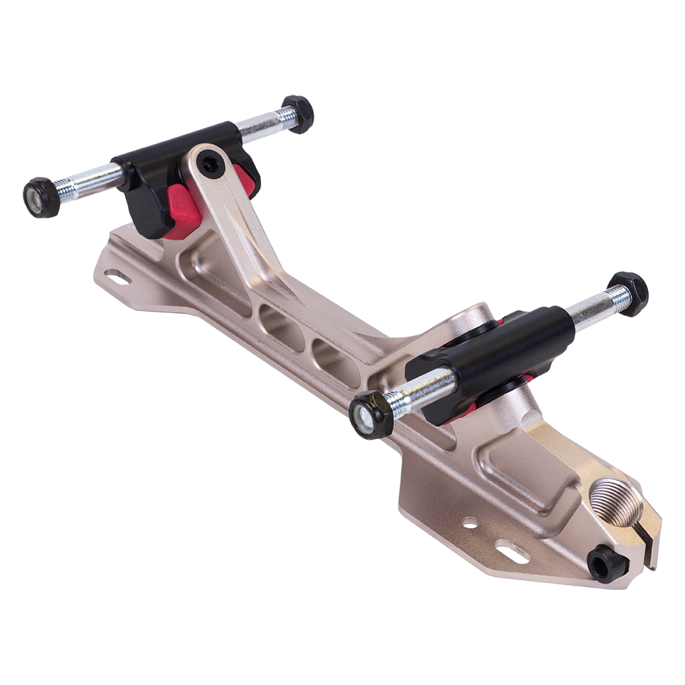 To start, the toe stop bolt is now found at the very front of the Arius Platinum, instead of behind the toe stop. This provides greater clamping power for secure stops, starts and other toe stop maneuvers.The trucks of the Arius Platinum also receive a significant update, with a “winged” truck body that securely holds the Split Butterfly Cushions in place with no need for any other stabilization or adjustment hardware.