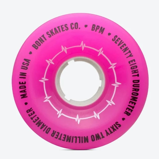 Looking to buy the best outdoor roller skate wheel on market, then the Bont BPM (Beats per Minute) is your new best friend! It is the perfect wheel for those looking to skate outdoors or on slick surfaces. The wheel provides amazing flex for a smoother ride as well as being super long-wearing. The urethane has a 78a durometer which reduces vibration on rough surfaces such as asphalt, sidewalk, and boardwalks. The 62mm diameter provides a faster roll with more efficiency and retains consistent speed better, especially on rough surfaces. The 35mm width allows you to keep your maneuverability when skating with this softer, bigger roller skate wheel size. The Bont BPM is the ideal outdoor roller skate wheel for everyone, whether you're a roller derby skater looking to cross-train on road, or a casual skater looking for some recreational, outdoor exercise to get your heart rate pumped up! Invest in a set of Bont BPM outdoor roller skate wheels and experience a new adventure on skates today.