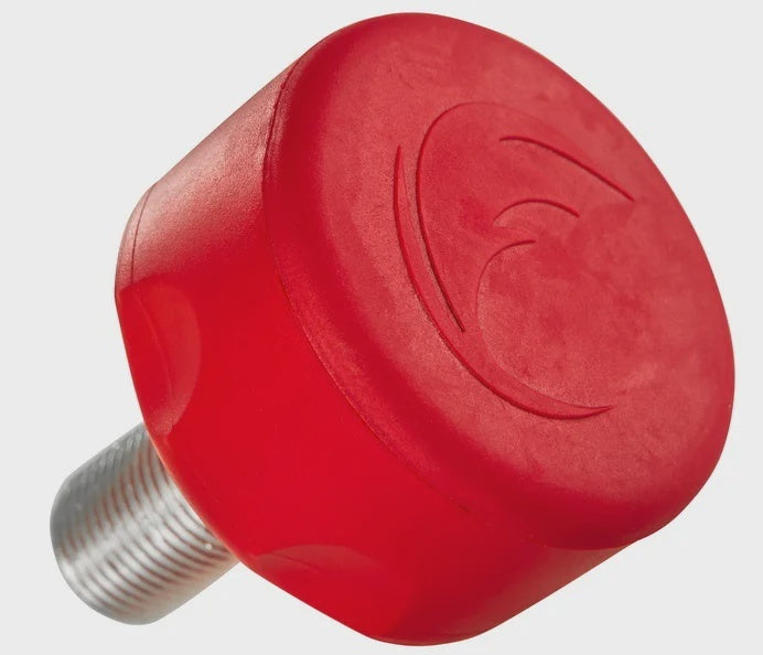 The Chaya Cherry Bomb toe stop is a combination of grippy natural rubber paired with long lasting and durable synthetic components. The flat head stopper with its wide surface area (48mm in diameter) provides stability and a predictable bite needed for acceleration and fast stops. To help reduce weight the Cherry Bomb stopper comes with an aluminum casted hollow stem.